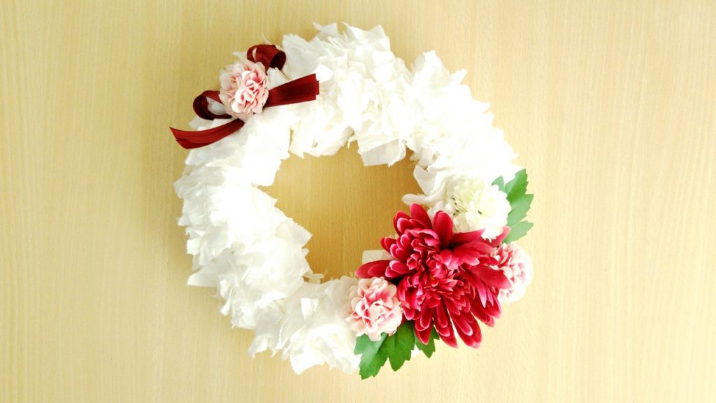 トイレットペーパー1つからリースが2つできました。