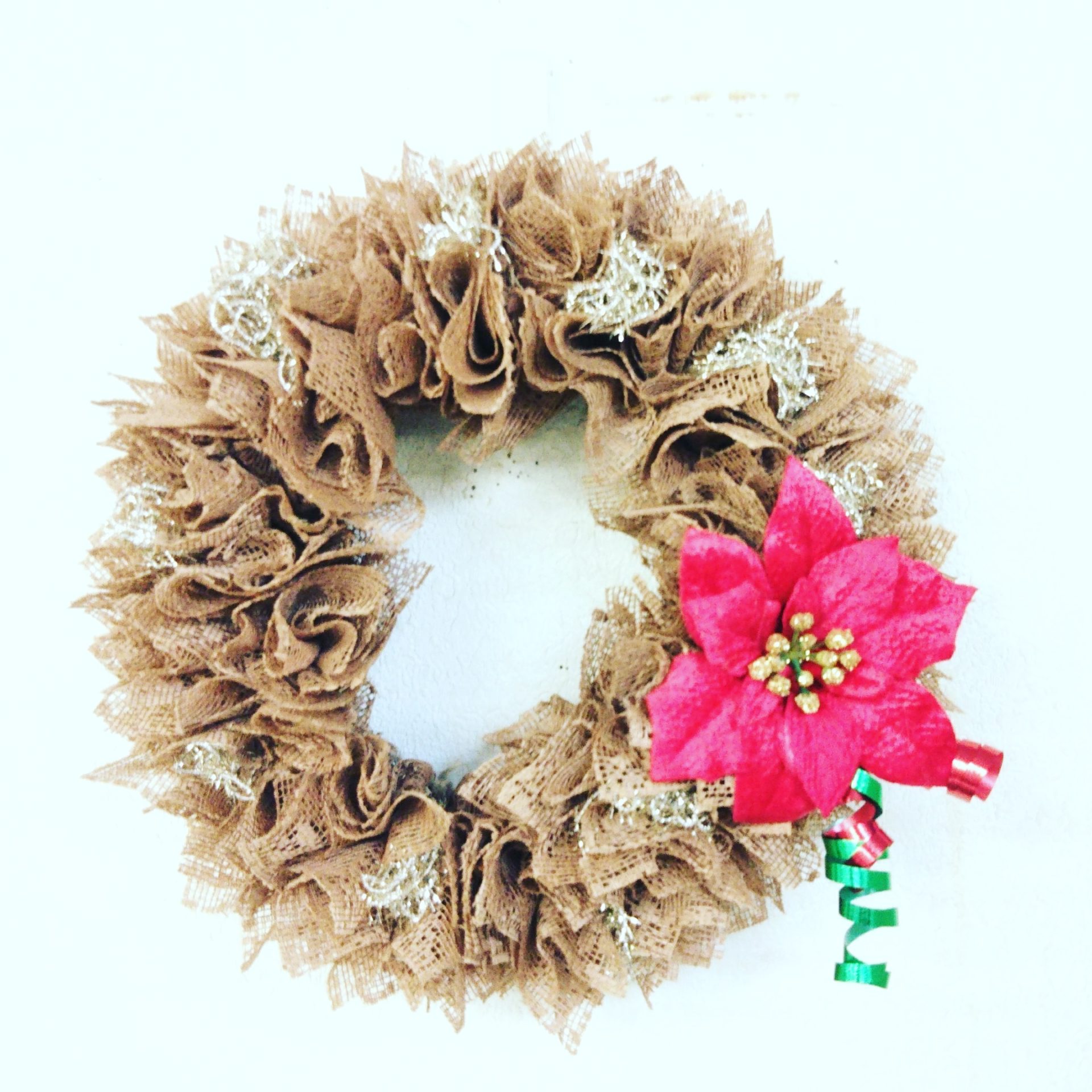 いただいたレースの布でクリスマスリースを作りました。